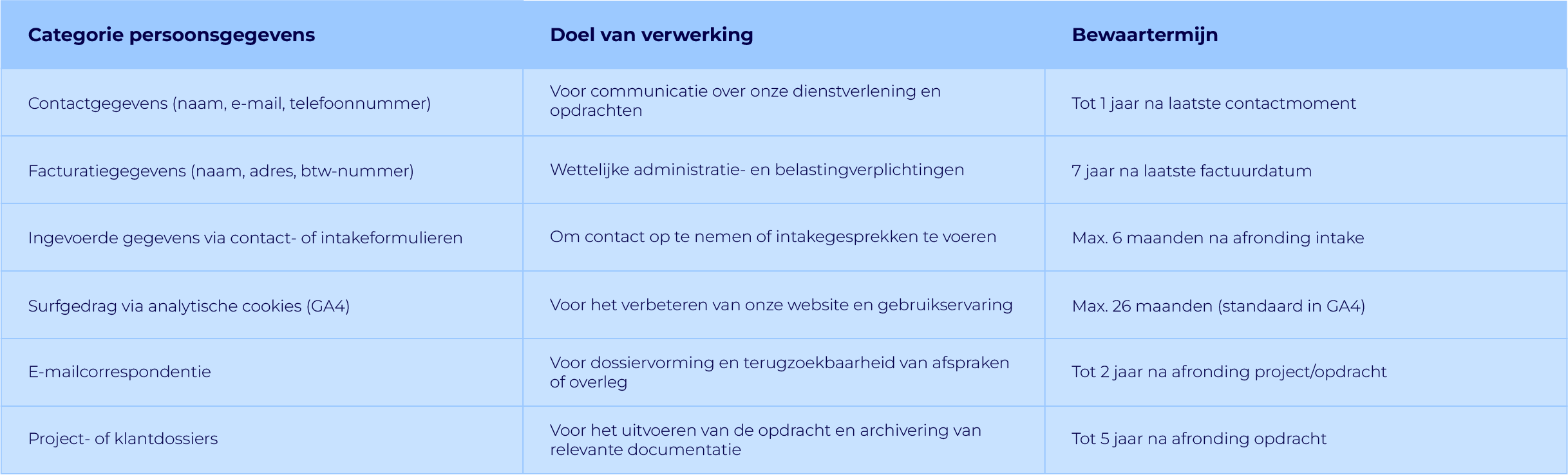 Hoe lang we persoonsgegevens bewaren